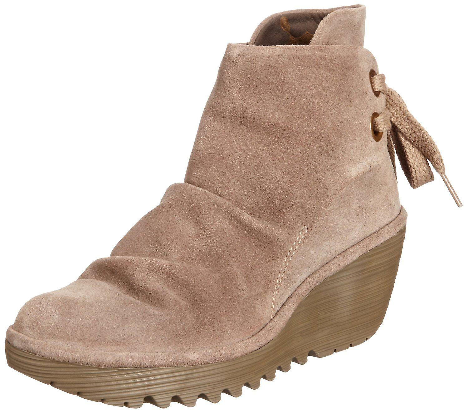Fly london Yama Taupe Suede Womens Wedge Ankle Shoes Boots