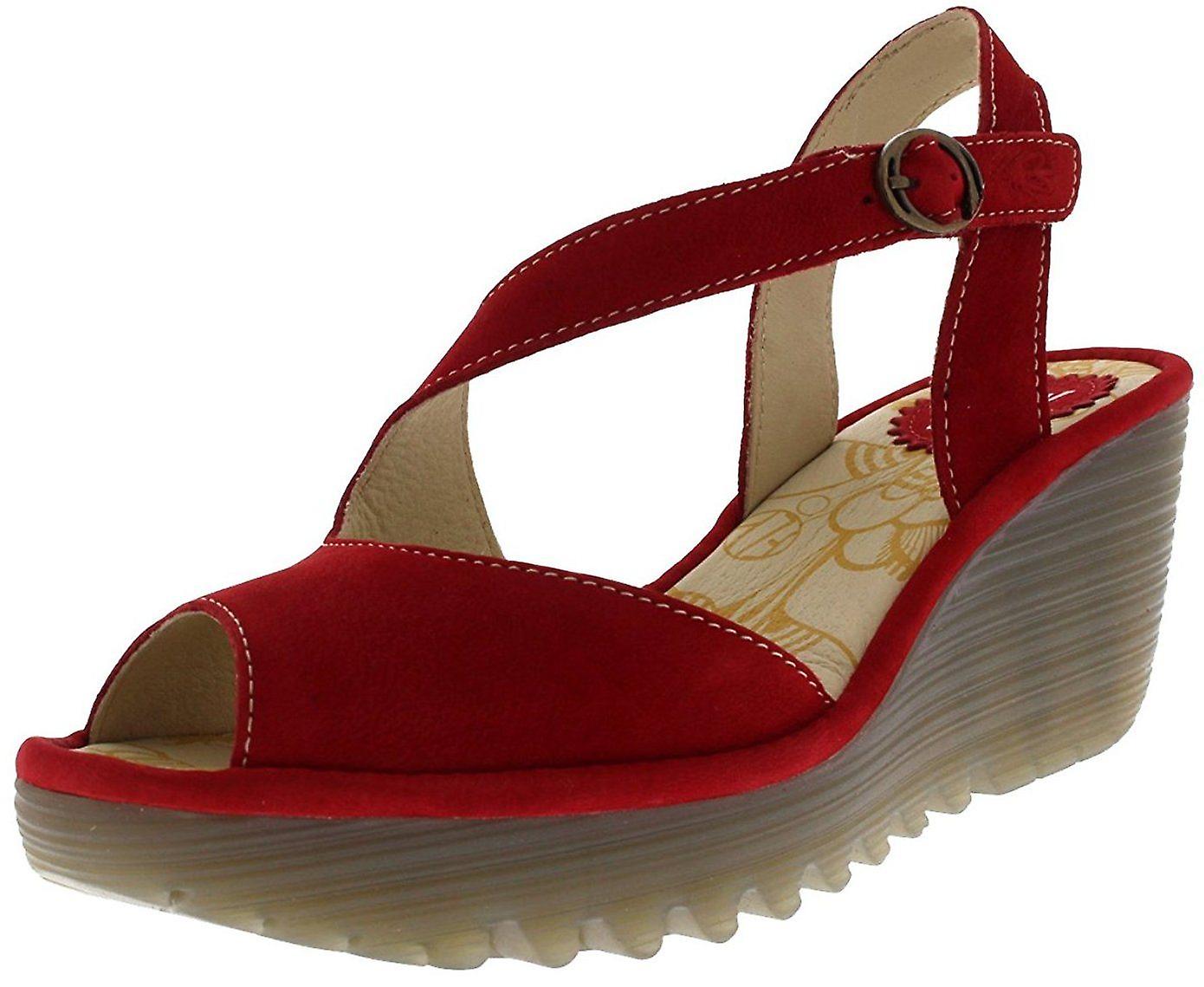 Fly london Yamp836fly Red Womens Leather Wedge Sandals Shoes