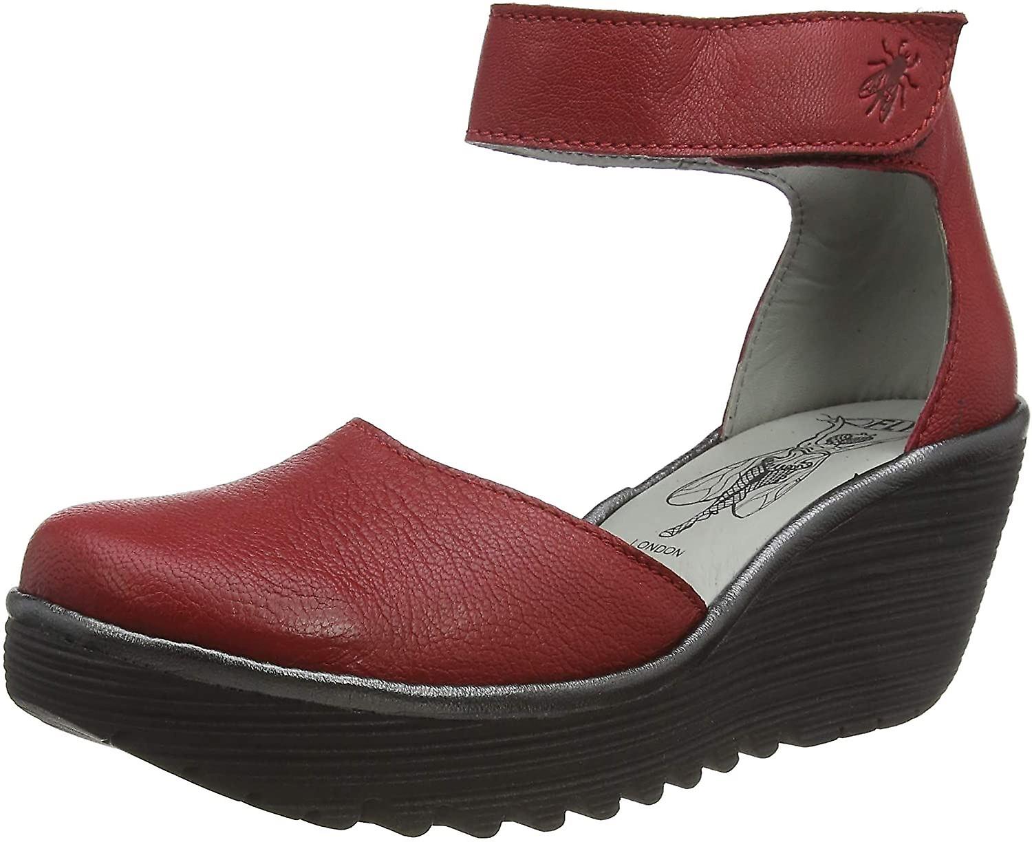 Fly london Yand709fly Red Graphite Womens Leather Wedge Shoes