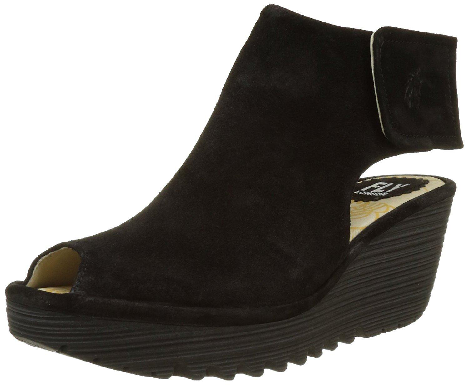 Fly london Yone642Fly Black Womens Suede Wedge Sandals Shoes