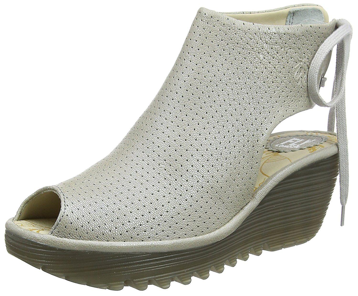 Fly london Ypul799fly Silver Womens Leather Wedge Sandals Shoes