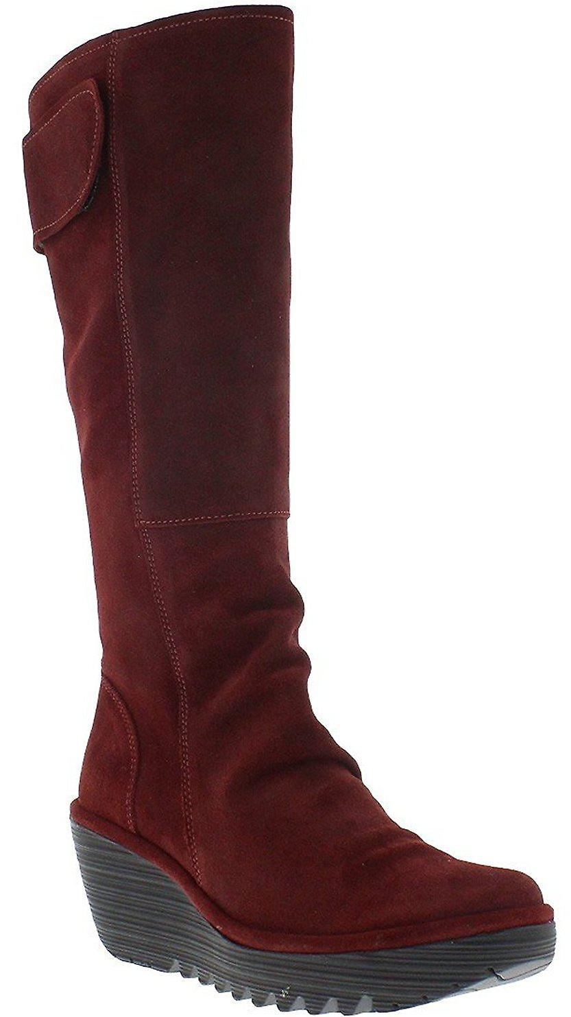 Fly London Yulo Wine Womens Suede Knee High Wedge Boots