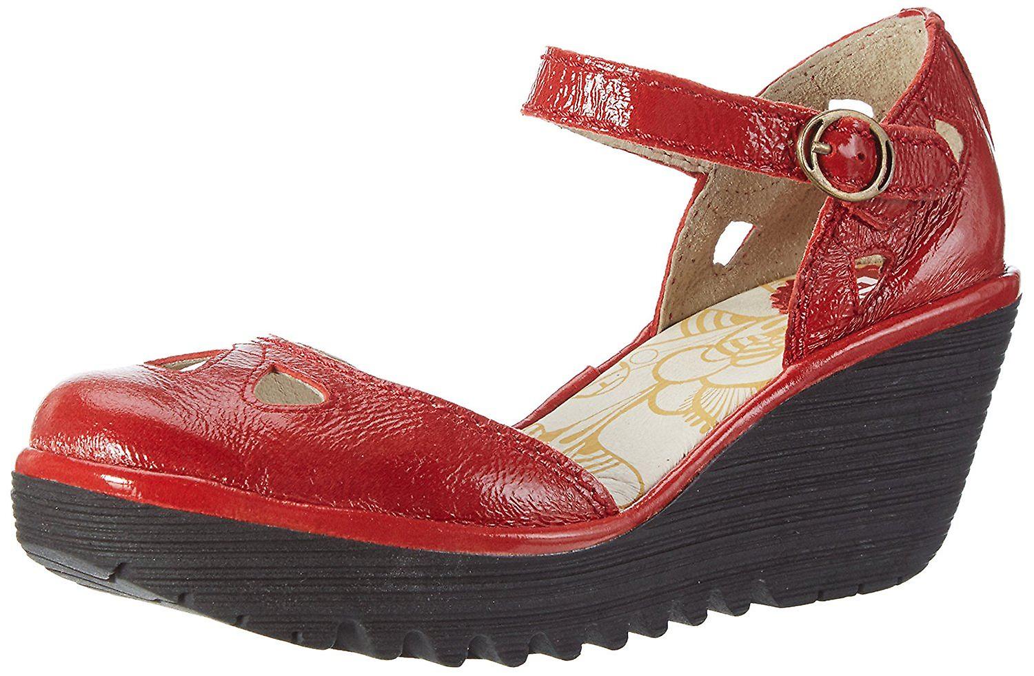 Fly London Yuna Red Patent Leather Womens Wedge Sandals