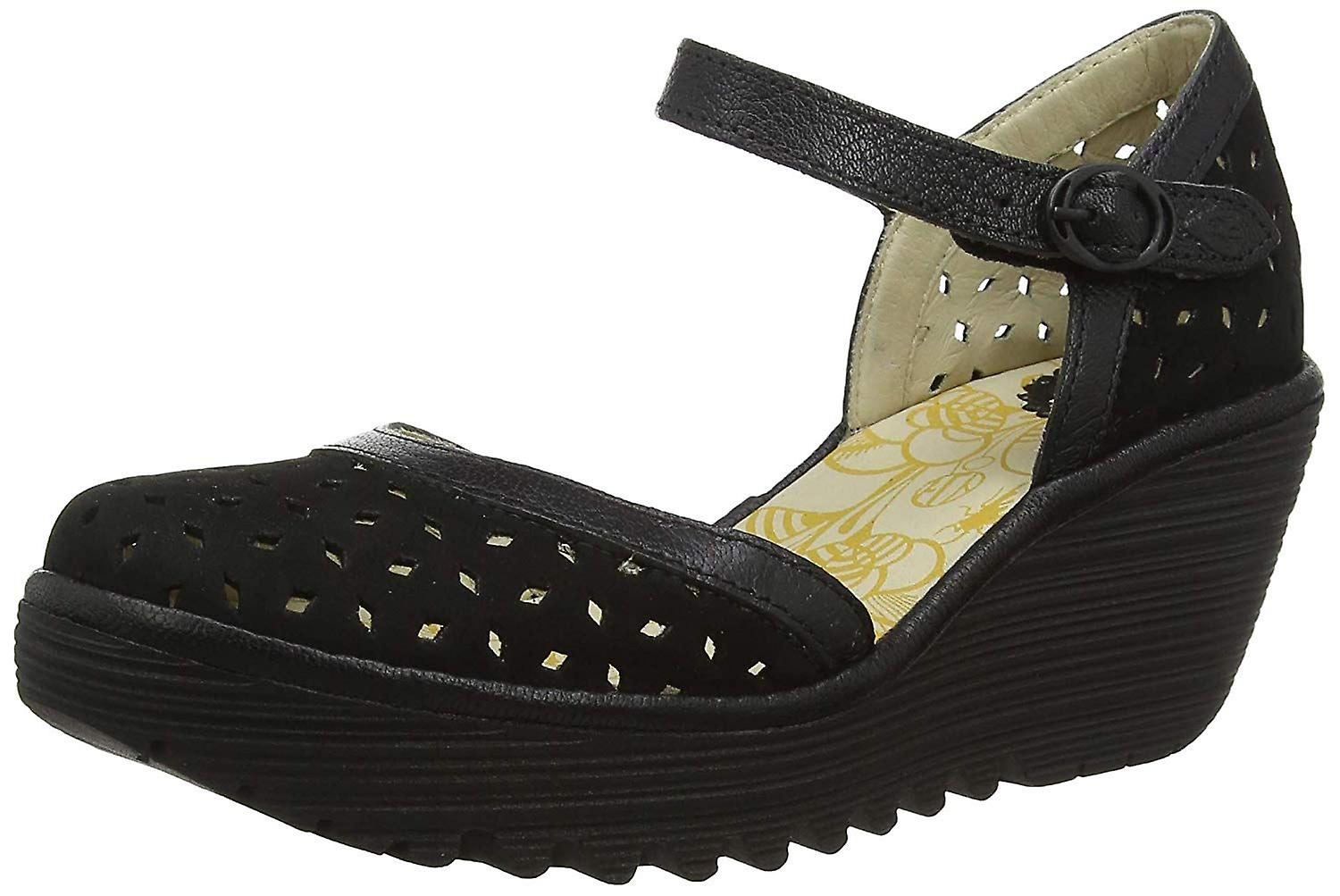 Fly London Yven029fly Black Womens Leather Wedge Sandals
