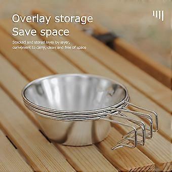 Foldable Bowl Stainless Steel Food Dish Container Camping Stove Hiking Tool Stainless Steel Bowl Long Handle Cookware Tableware