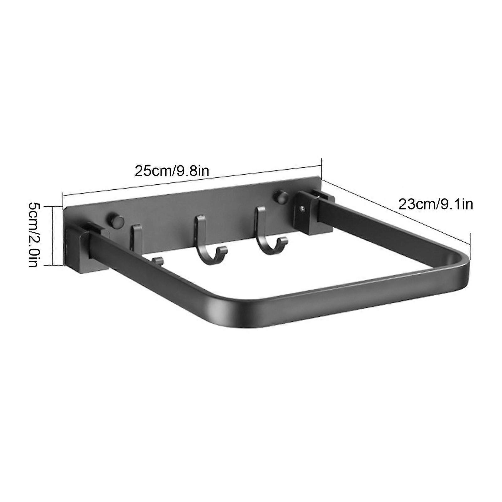 Foldable Telescopic Wall‑mounted Multifunctional Towel Rack Aluminum alloy with Row Hooks Towel Holder for Bathroom Kitchen 9.8x9.1x2.0in,Black