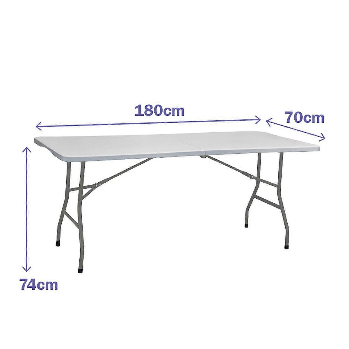 Keep fit and discover the sector's latest new releases to perform sports Purchase Folding Table Marbueno Grey 70 x 74 x 180 cm at the best price and enjoy a healthy life Shape: RectangularColour: GreyMaterial: ResinCharacteristics: FoldableSafety blockConvenient and easy to useClean with a wet clothIncludes: Carrying handleRecommended use: BeachExteriorGardenCampingCateringApprox. dimensions: 70 x 74 x 180 cm
