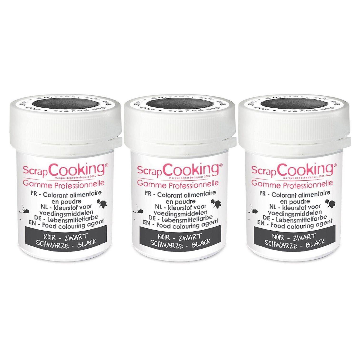 Powdered food coloring, for professional use 3 pots of 5 g. A knife point is enough. Ingredients: dye E153. Allergens: may contain traces of nuts, peanuts, gluten, eggs, milk, sesame seeds, celery, mustard. Allergens: may contain traces of nuts, peanuts, gluten, eggs, milk, sesame seeds, celery, mustard. Net weight: 5 g. Directions for use: keep away from light and humidity after opening. For foodstuffs: limited use. Do not ingest as is. Do not inhale. Do not get in eyes.