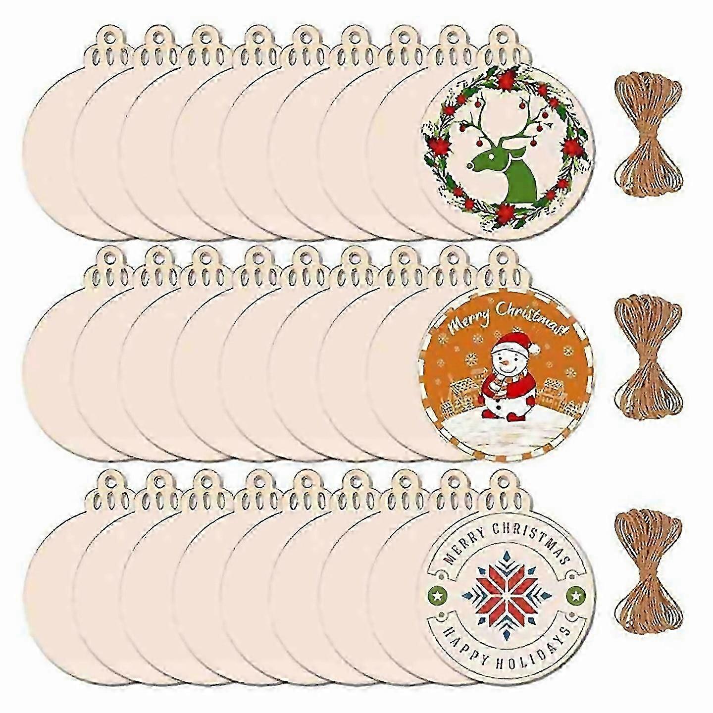 For 100pcs Christmas Wooden Round Baubles Tags Diy Craft Ornaments