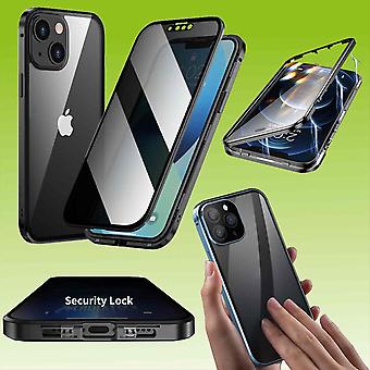 For Apple iPhone 15 Plus Double-Sided 360 Degree Magnet / Glass Privacy Mirror Case Cover Mobile Phone Bag Bumper Black