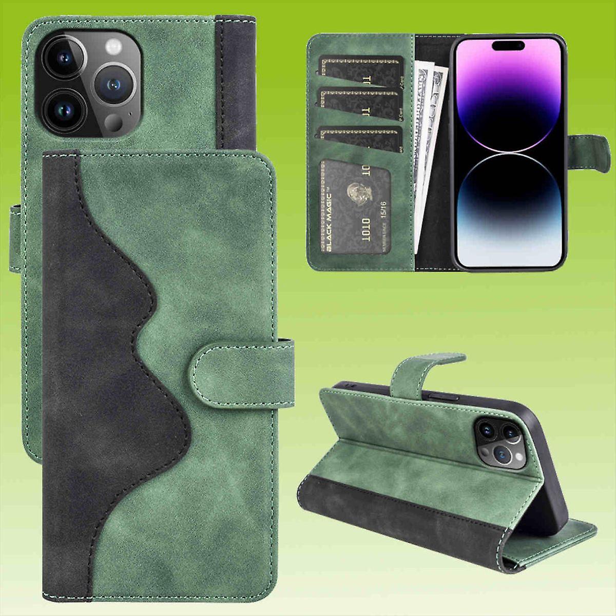 Für Apple iPhone 15 Pro Max Design Handy Tasche Wallet Premium Grün Schutz Hülle Case Cover Etuis Zubehör
