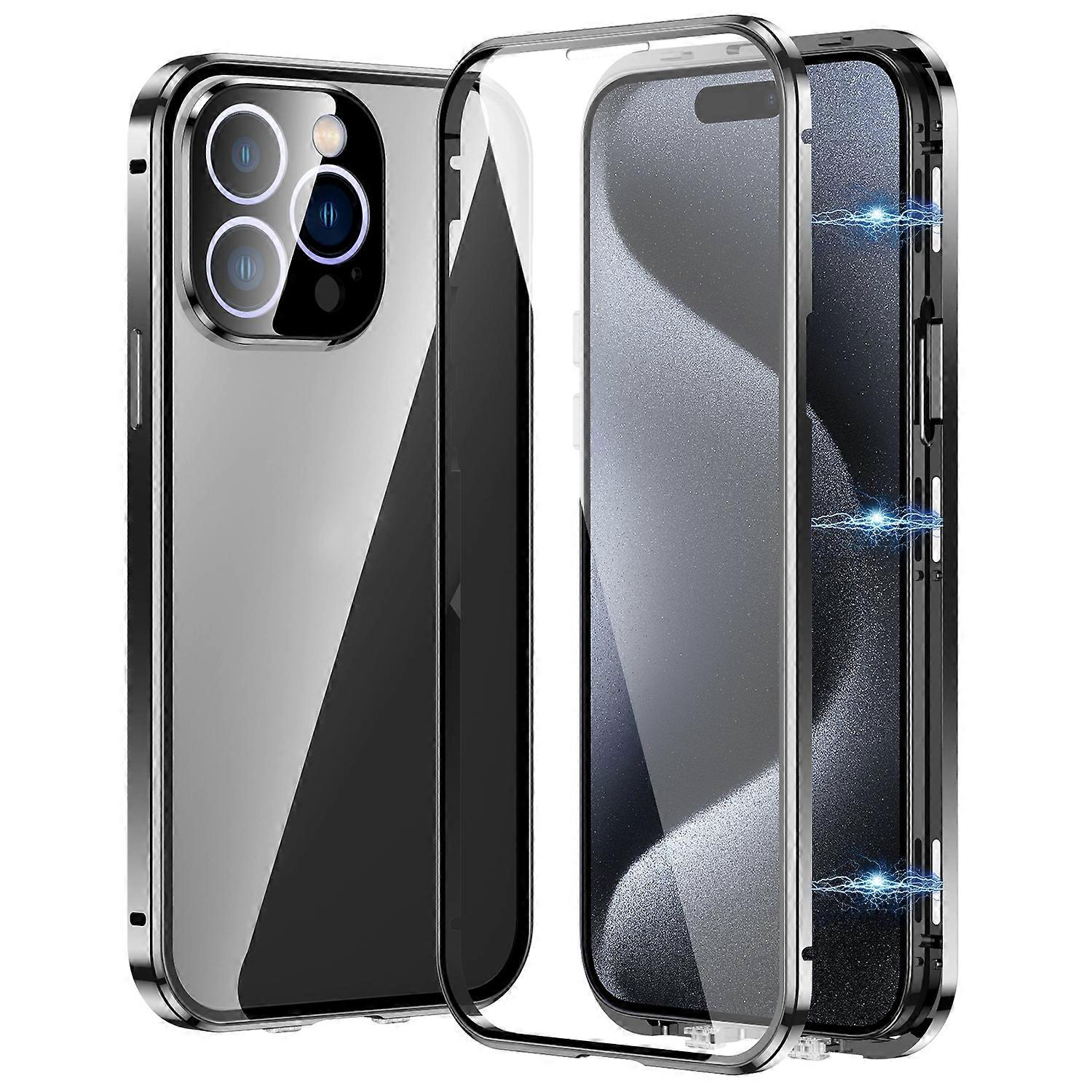 Für Apple iPhone 16 Pro Beidseitiger Magnet Glas Hülle Bumper Schwarz