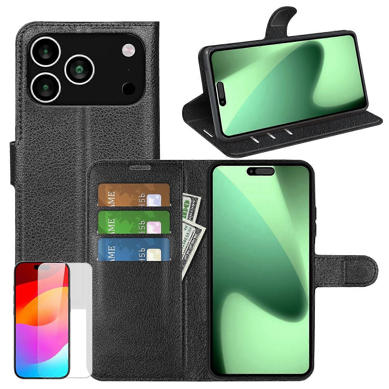 Für Apple iPhone 17 Pro Max Kunstleder Hülle Schwarz + 9H Hart Glas