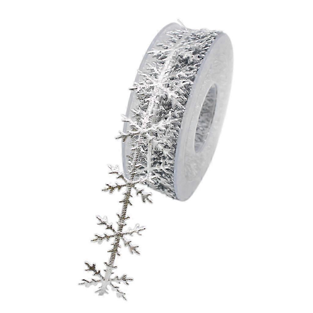 for Creative Christmas Ribbon Lace Trims Golden Silver Glitter Snowflake Shape Lace Ribbons for Birthday Wedding Party D Silver