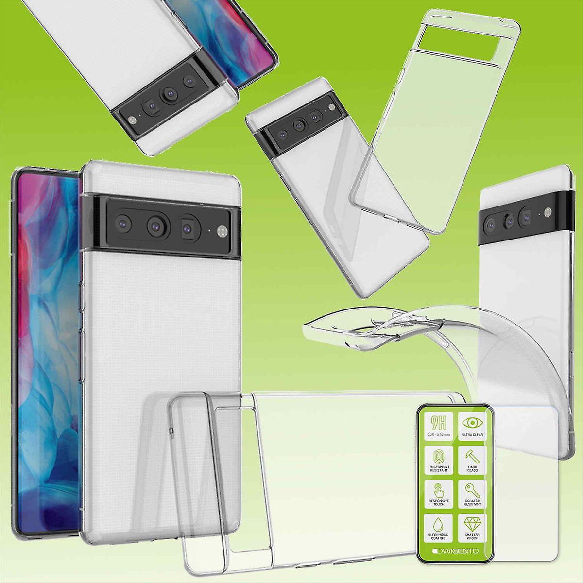 Für Google Pixel 7 Pro Silikoncase TPU Transparent + 4D Curved H9 Glas Handy Tasche Hülle Schutz Cover