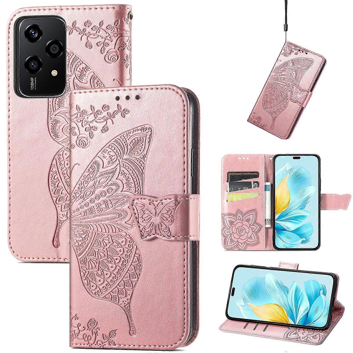 Für Honor 200 Lite Kunstleder Wallet Tasche Schmetterling Hülle Rosa
