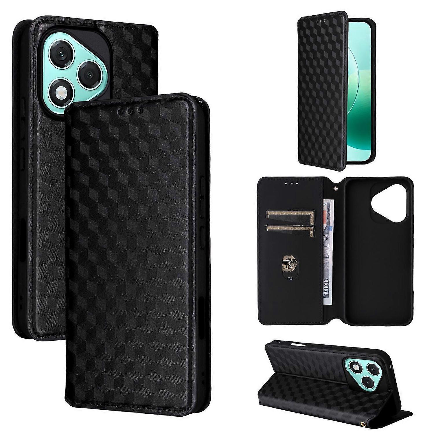 Für Honor 400 Lite Cubic Design Flip Kunstleder Wallet Hülle Schwarz