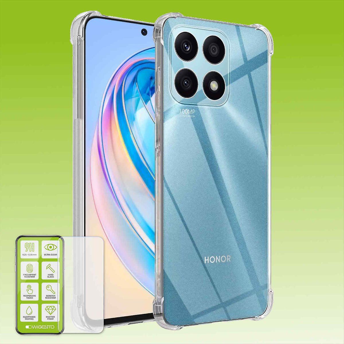 Für Honor X8a Silikoncase Schock TPU Transparent + 0,26 H9 Glas Handy Tasche Hülle Schutz Cover