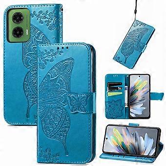 Für Motorola Moto G35 Kunstleder Schmetterling Book Tasche Hülle Blau