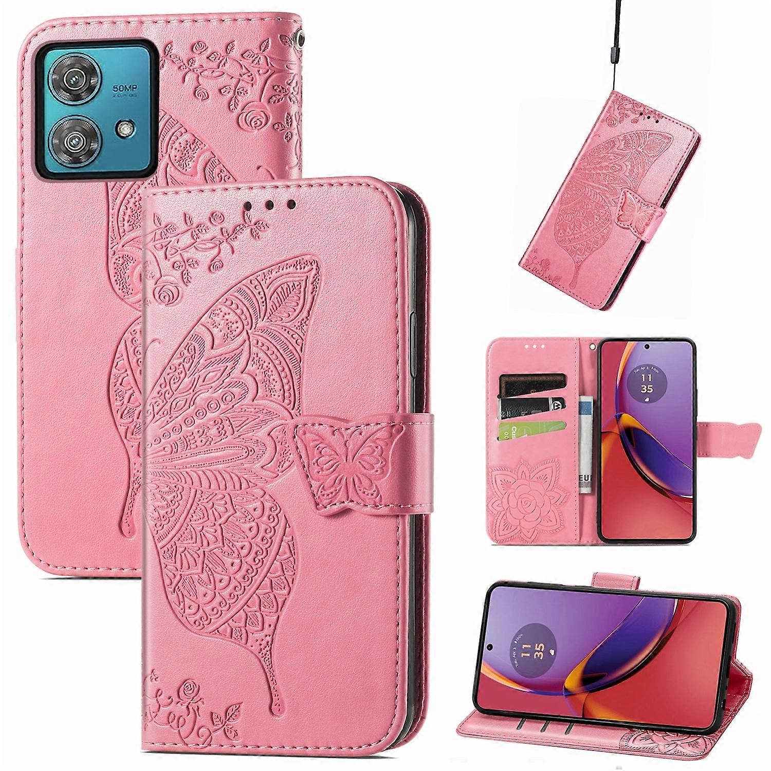 Für Motorola Moto G84 5G Kunstleder Wallet Handy Tasche Schmetterling Design Schutz Hülle Case Cover Etuis Pink