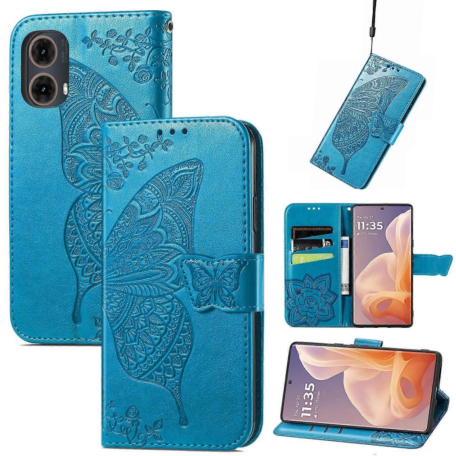 Für Motorola Moto G85 Kunstleder Schmetterling Book Wallet Hülle Blau