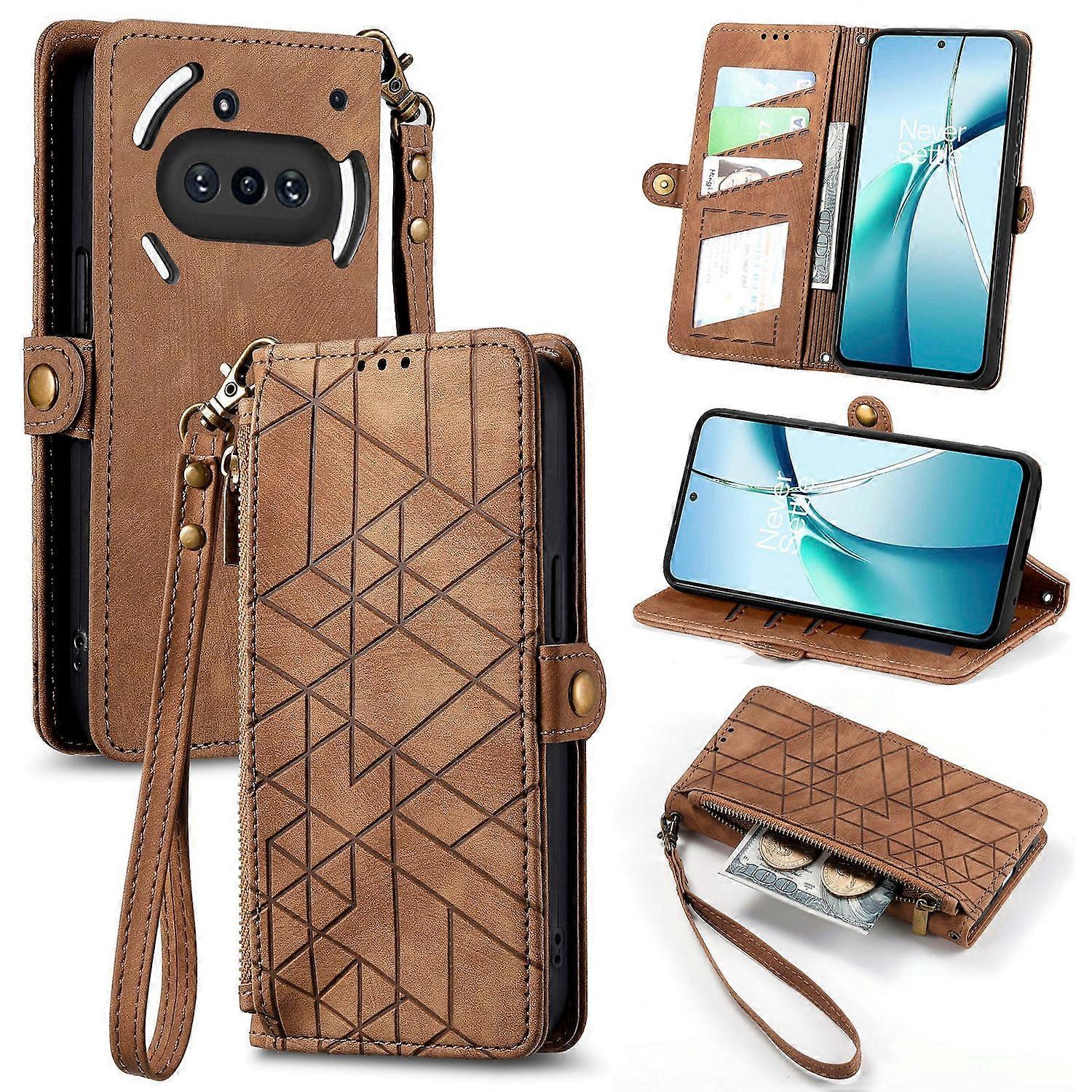 Für Nothing Phone 3a Kunstleder Design Zipper Book Hülle Tasche Braun