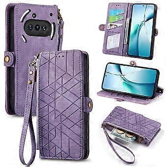 For Nothing Phone 3a Faux Leather Design Zipper Book Sleeve Bag Purple