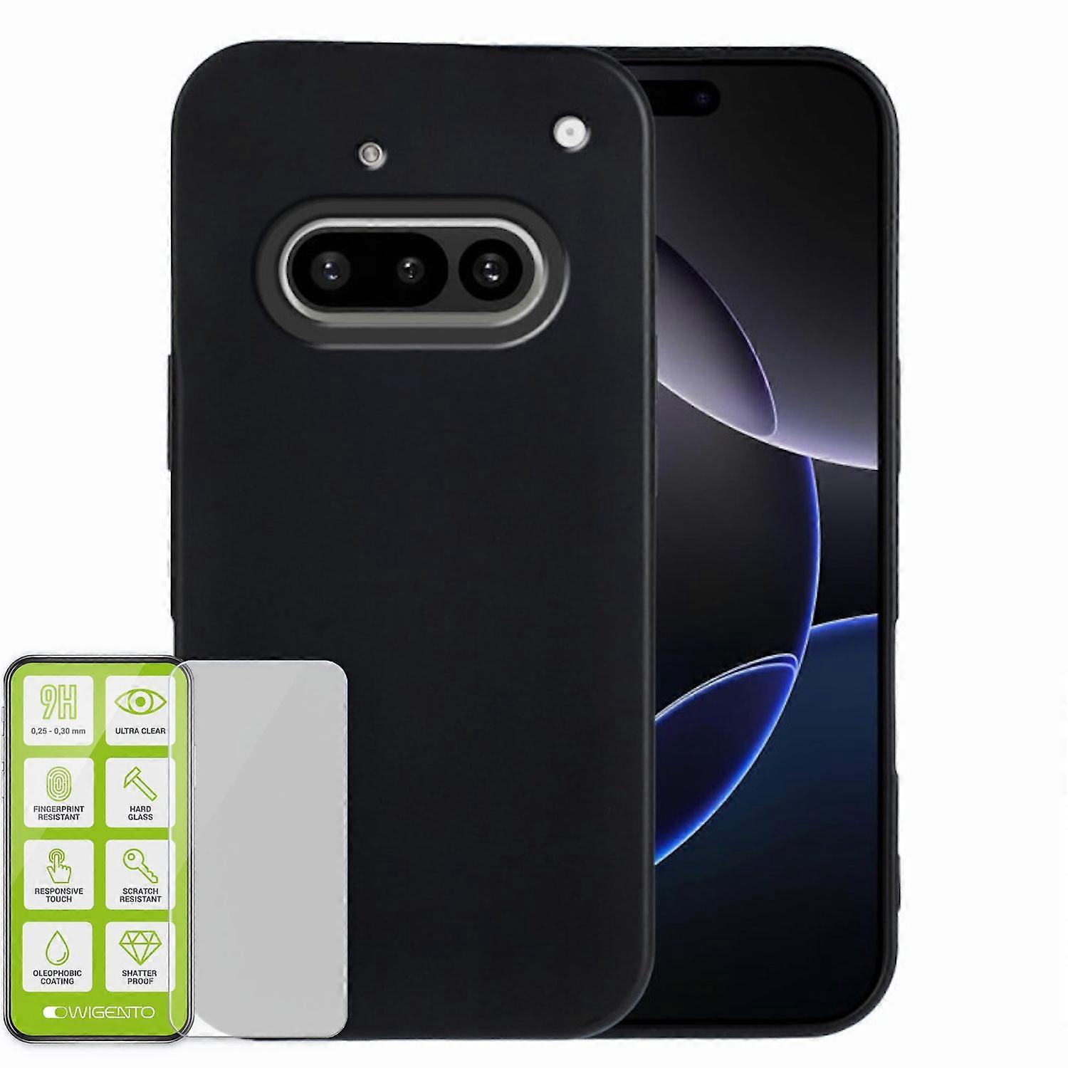 Für Nothing Phone 3a Silikon TPU Schutz Hülle Schwarz + 9H Hart Glas