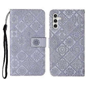 For Samsung Galaxy A16 5G A16 4G Leather Case Ethnic Style Phone Wallet Cover with Strap - Purple