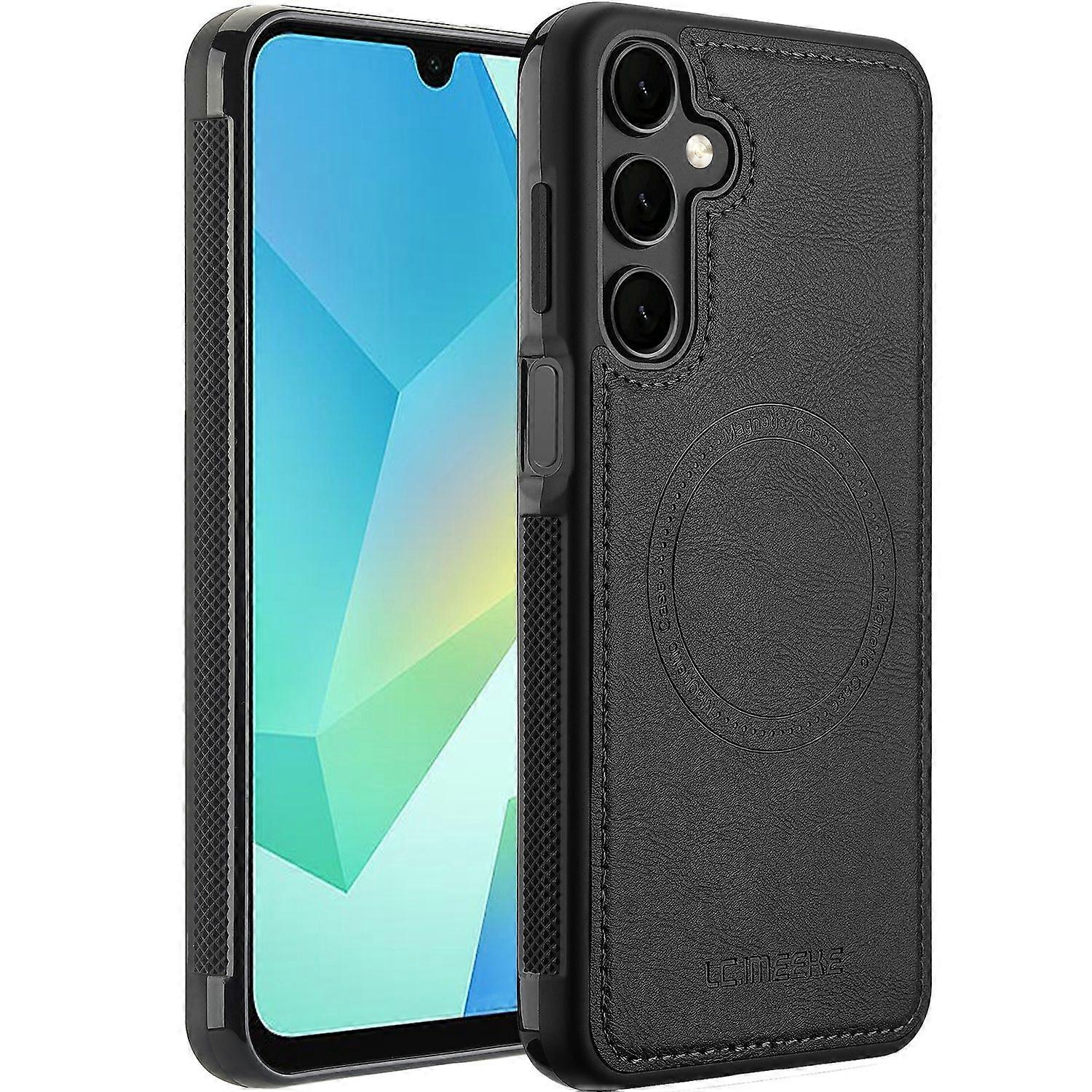 Für Samsung Galaxy A16 5G Kunstleder MagSafe Design Hülle Case Schwarz