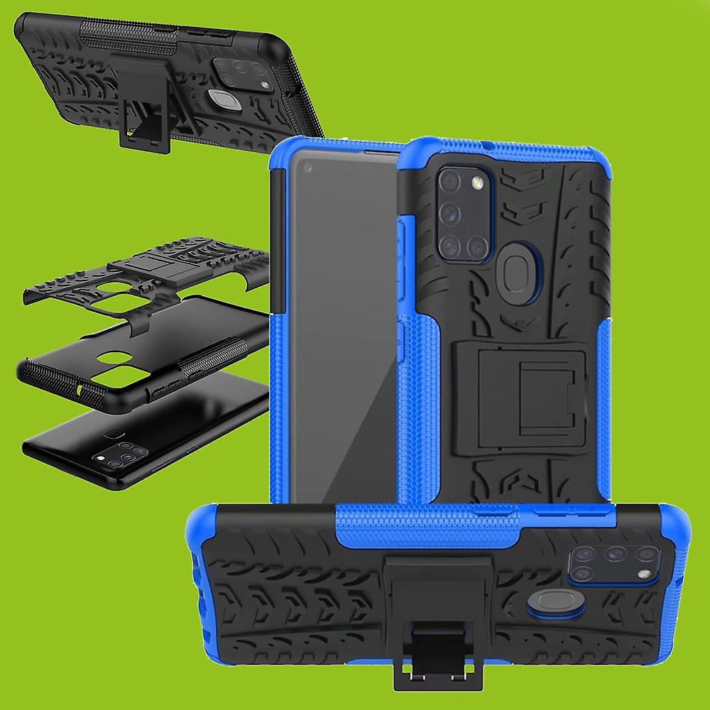 Für Samsung Galaxy A21s A217F Hybrid Case 2teilig Outdoor Blau Tasche Hülle Cover Schutz