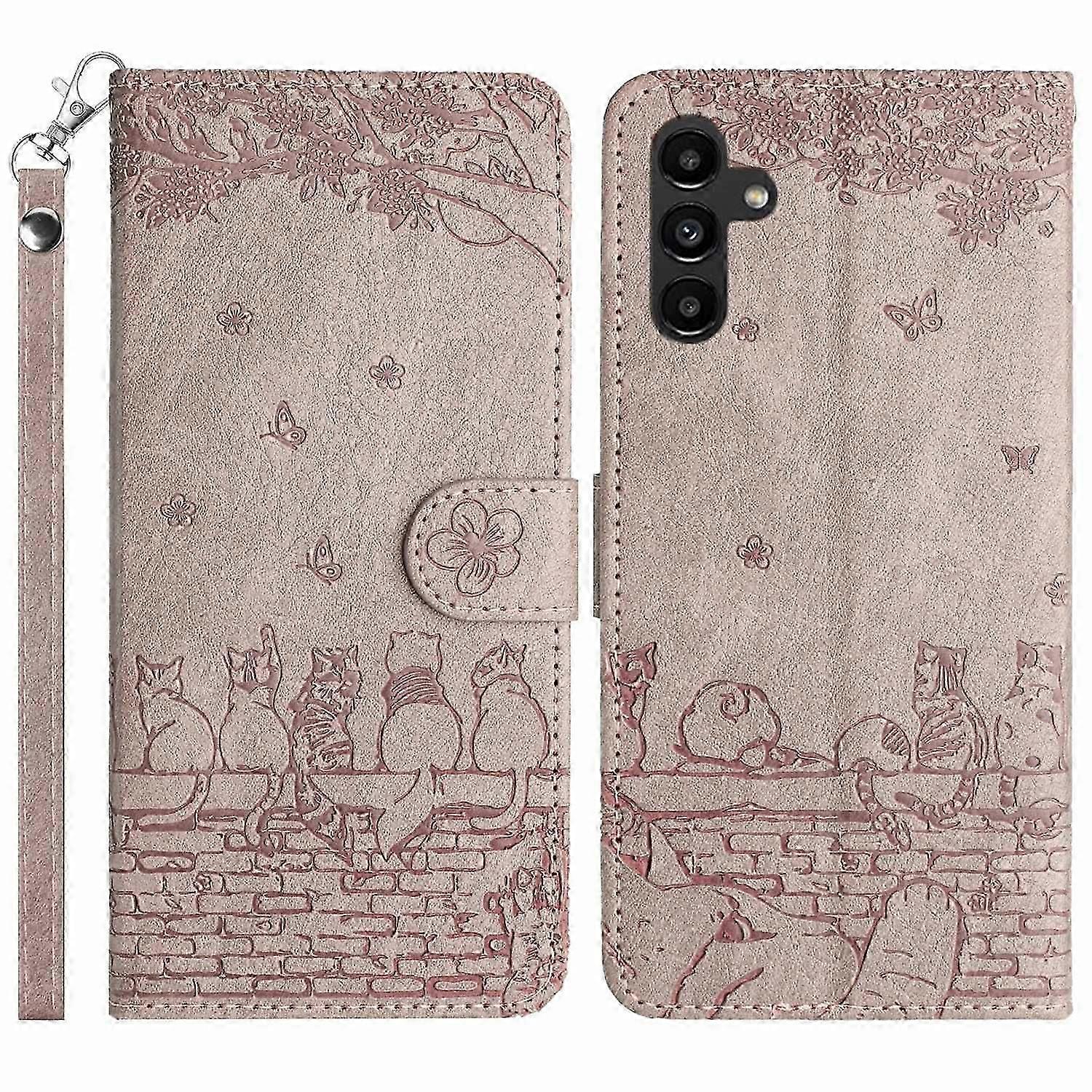 For Samsung Galaxy A26 5G Case with Wrist Strap Leather Phone Cover Wall Cats Pattern - Smoky PurplePremium Material Made from PU leather shell with flexible TPU inner case,providing full protection,durable for long-term useStylish Pattern Imprinted Many cats on the wall,the imprinted pattern looks stylish and attractiveMulti-functional Storage Function With 2 credit card slots + 1 photo slot + 1 cash pocket for carrying your cards and cashSafety Magnetic Closure Magnetic clasp to keep the cover firmly closed to safeguard the cash and cardsAdjustable Stand Foldable and stable stand with adjustable angle for hands-free experienceComes with Wrist Strap With a handy strap,convenient to carryCompatible with:Galaxy A26 5GPackage included:1 x PU Leather Phone Case1 x Hand StrapOther items not included