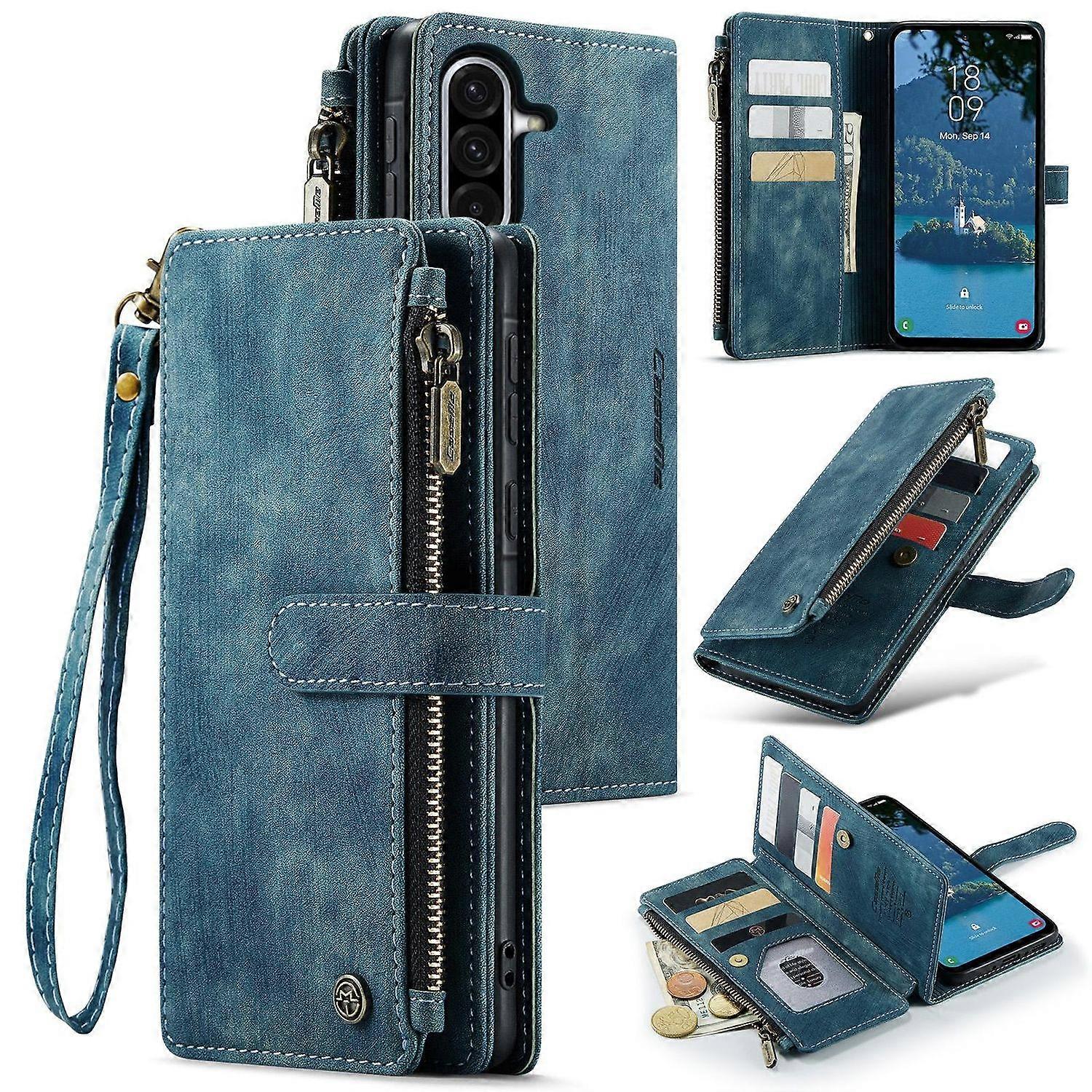 Für Samsung Galaxy A56 / A36 Kunstleder Multifunktion Tasche Case Blau