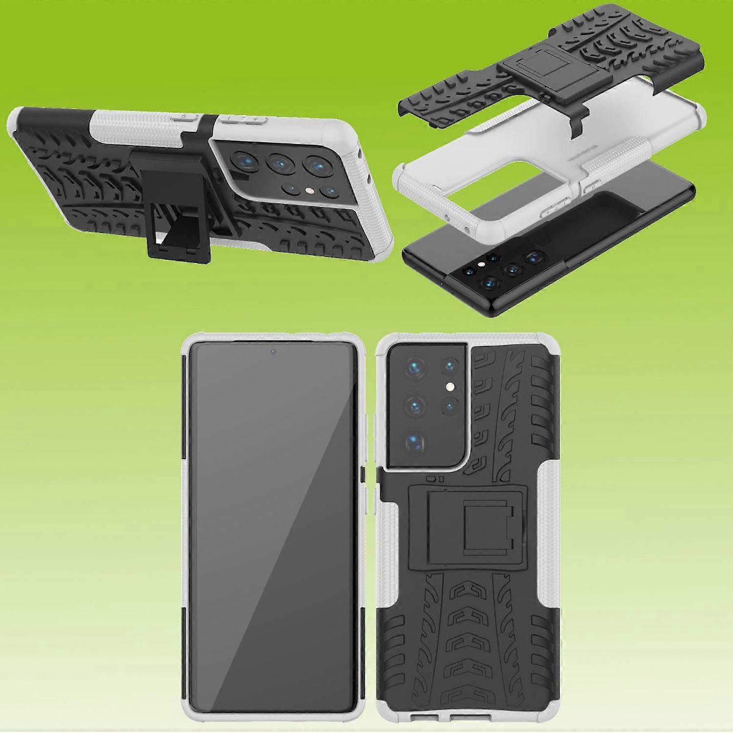 Für Samsung Galaxy S21 Ultra G998B Hybrid Case 2teilig Outdoor Weiß Handy Tasche Hülle Cover Schutz