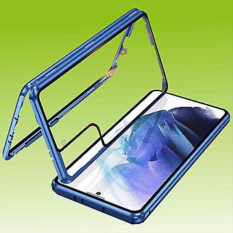 For Samsung Galaxy S22 Plus Double-Sided 360 Degree Magnet / Glass Case Cover Mobile Phone Bag Bumper Blue