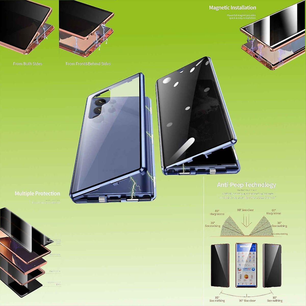 Für Samsung Galaxy S23 Ultra 5G Beidseitiger 360 Grad Magnet / Glas Privacy Mirror Case Hülle Handy Tasche Bumper Blau