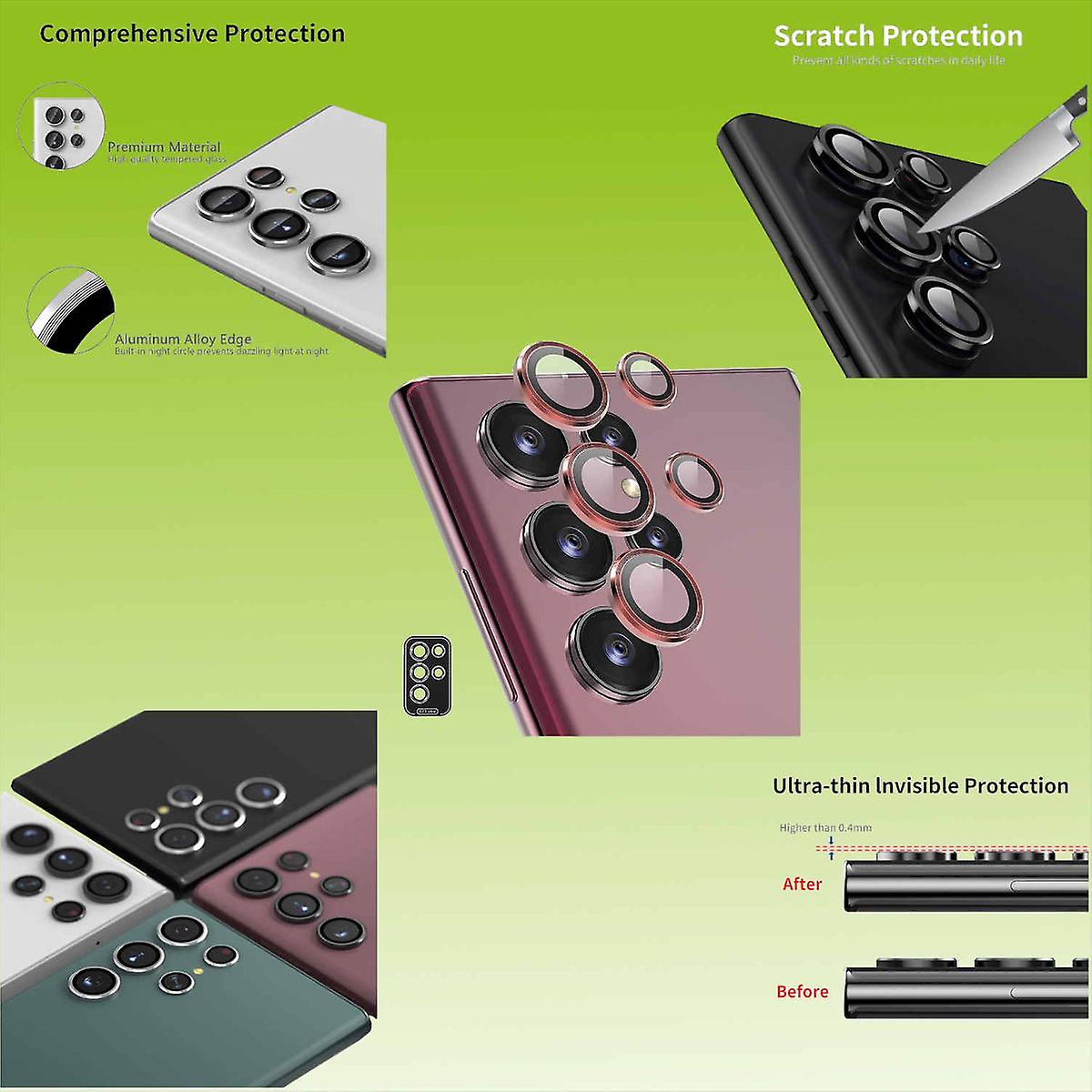 Für Samsung Galaxy S23 Ultra Aluminium Ring Kamera + H9 Tempered Hart Glas Film Lila