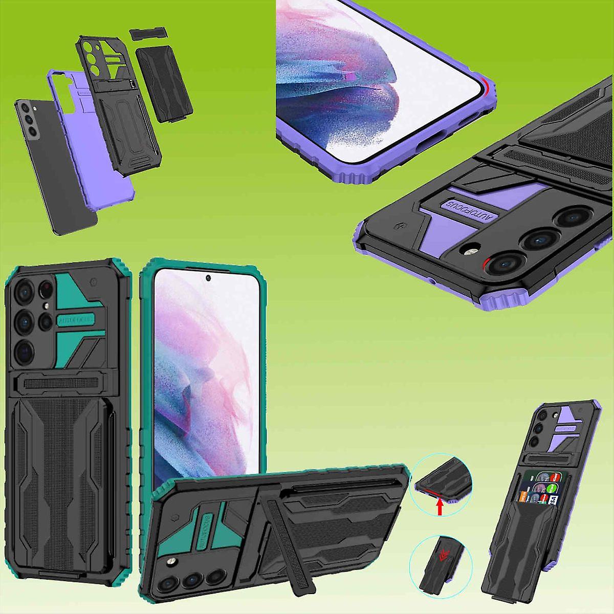 Für Samsung Galaxy S23 Ultra Shockproof Armor Hülle mit Kartenfach Grün