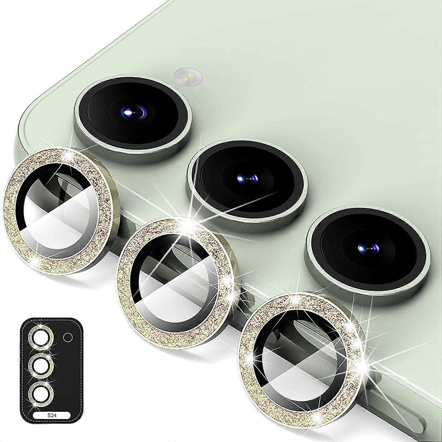 Für Samsung Galaxy S24 Aluminium Glitzer Ring Kamera + H9 Hart Glas Gold
