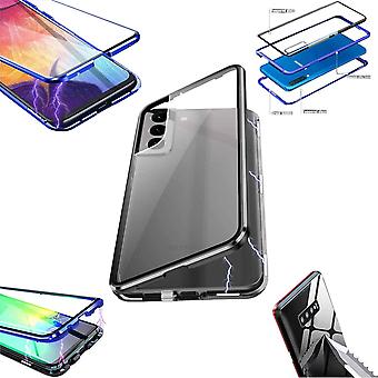 Für Samsung Galaxy S24 Beidseitiger 360 Grad Magnet Glas Hülle Handy Tasche Bumper Schwarz