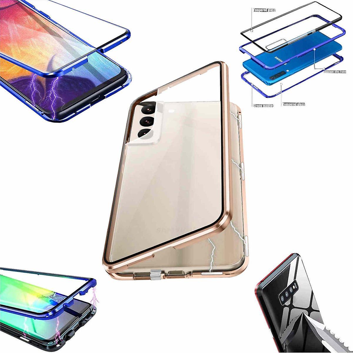 Für Samsung Galaxy S24 Plus Beidseitiger 360 Grad Magnet Glas Hülle Handy Tasche Bumper Gold