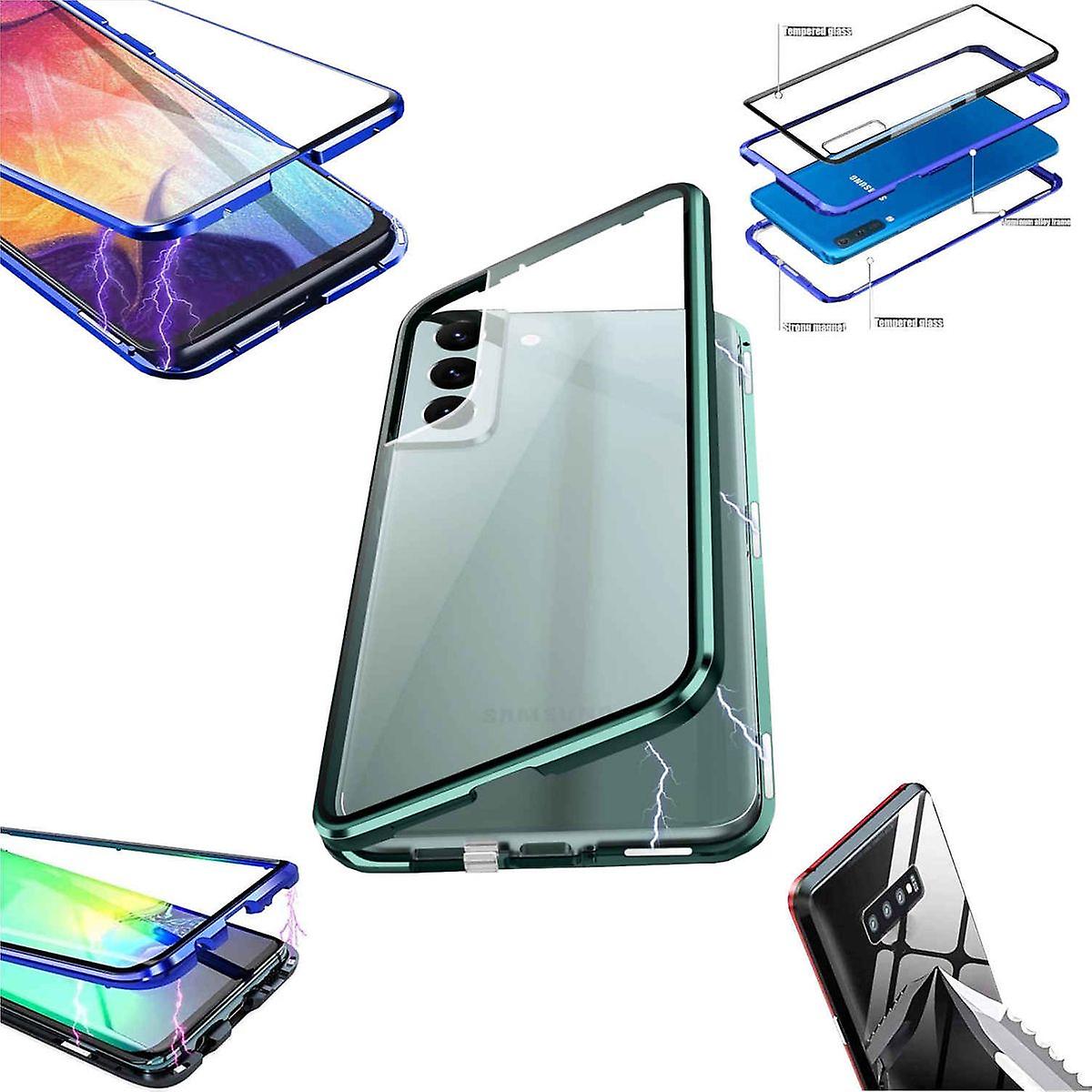 Für Samsung Galaxy S24 Plus Beidseitiger 360 Grad Magnet Glas Hülle Handy Tasche Bumper Grün