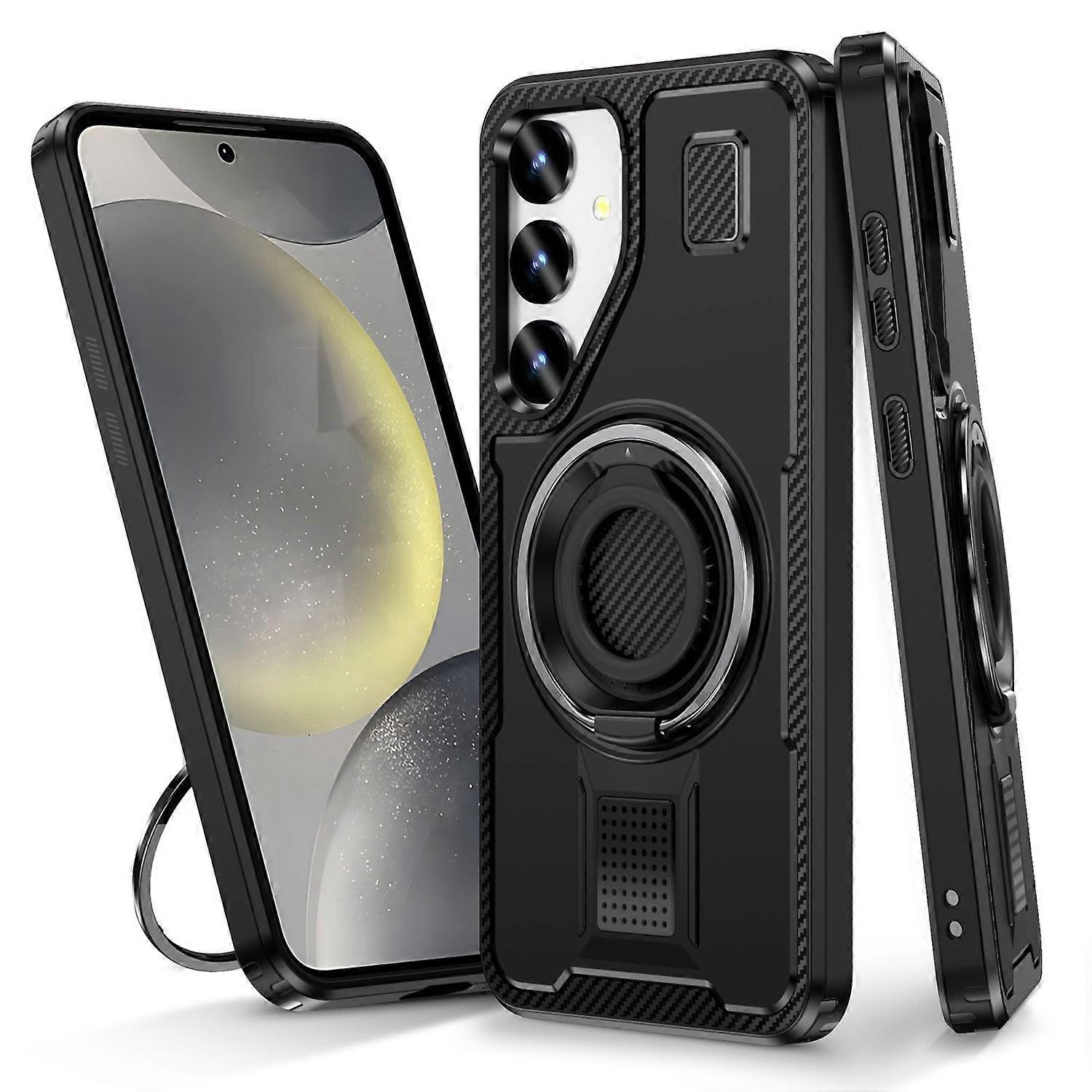 Für Samsung Galaxy S25 5G Carbonfaser Ringhalter Hybrid TPU Hülle