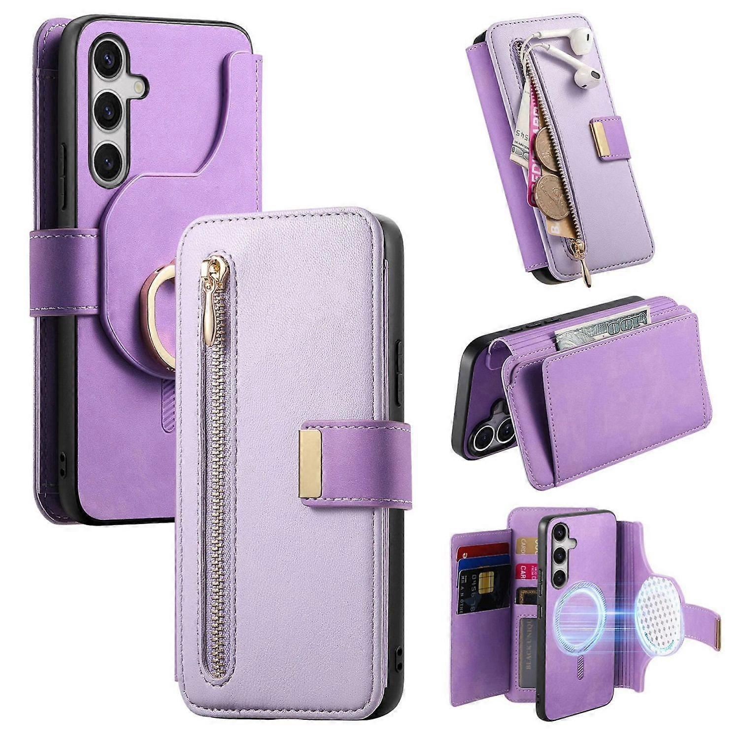 Für Samsung Galaxy S25 FE 5G MagSafe Kunstleder Wallet Hülle Lila