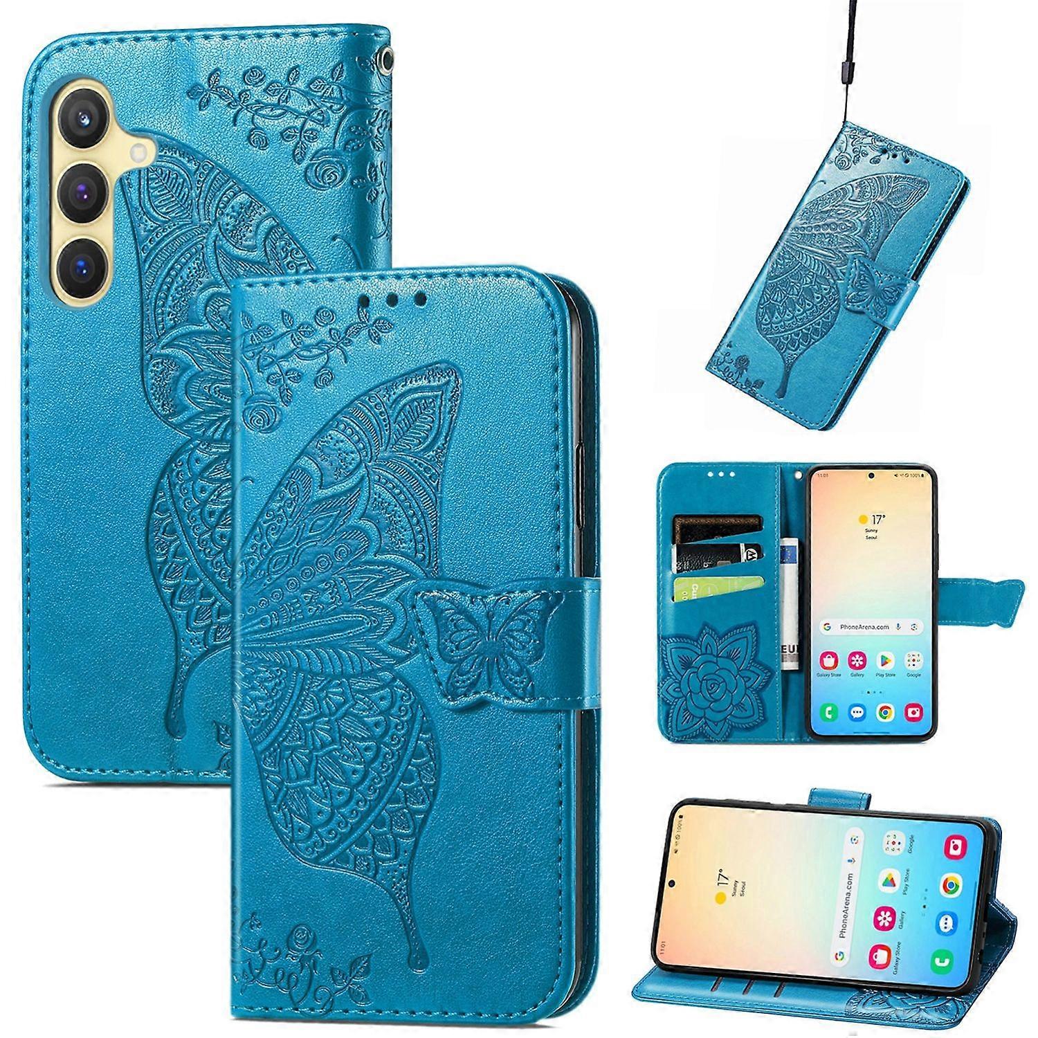 Für Samsung Galaxy S25 Plus Kunstleder Wallet Schmetterling Hülle Blau