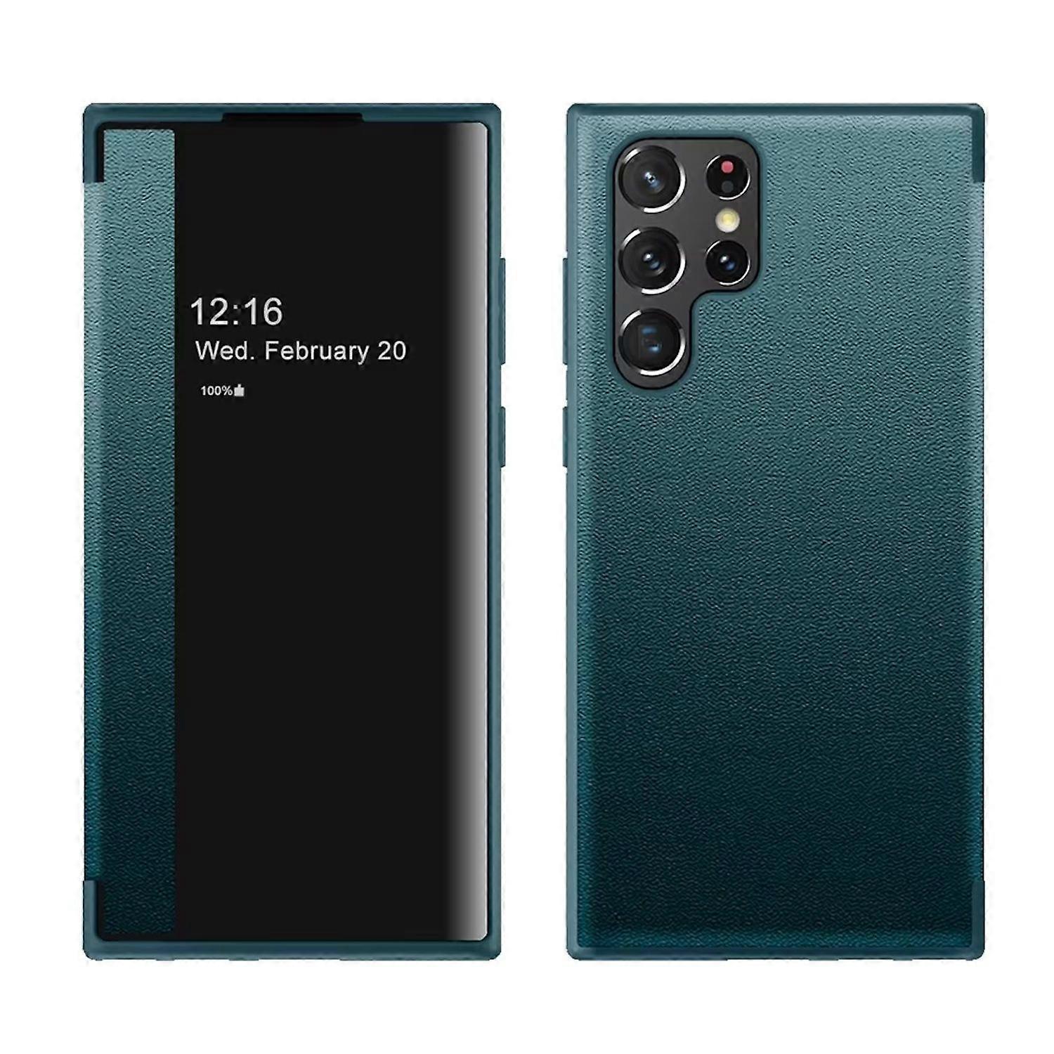 Für Samsung Galaxy S25 Ultra 5G Mirror View Smart Cover Hülle Grün