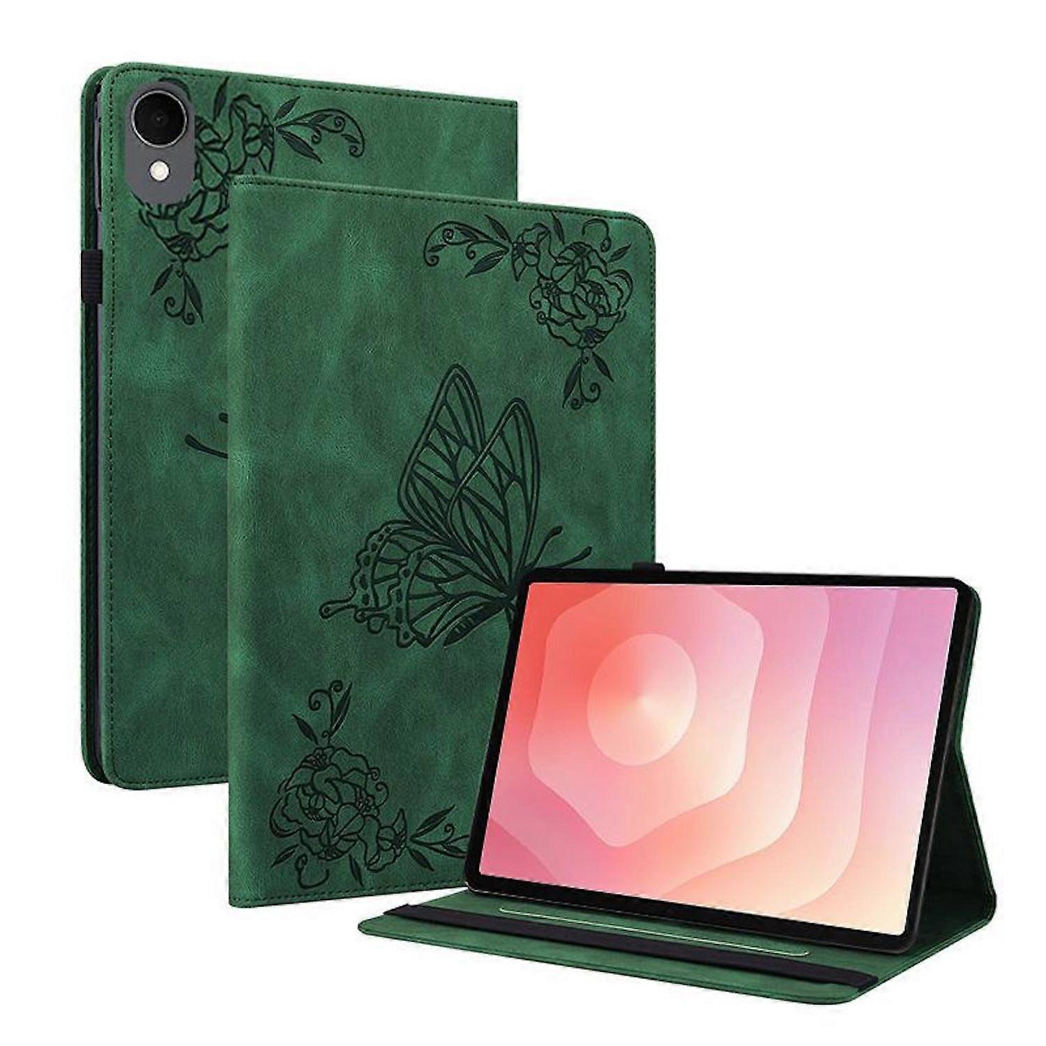 Für Samsung Galaxy Tab S11 Schmetterling Design Kunstleder Tasche Grün