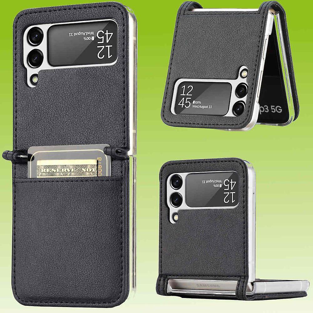 Für Samsung Galaxy Z Flip3 5G All-Inclusive Kunstleder Hart Cover Handy Tasche Hülle Etuis Schwarz