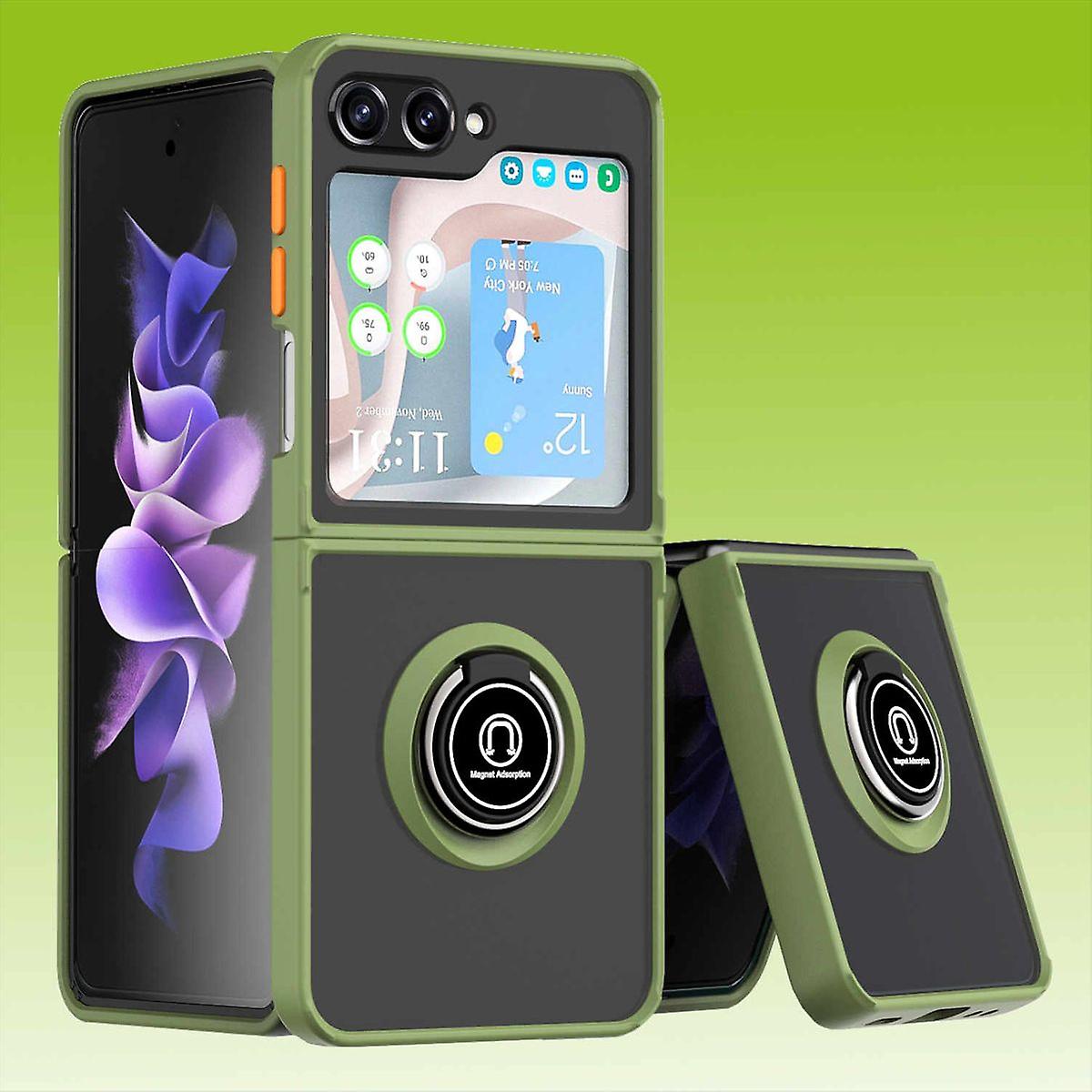 Für Samsung Galaxy Z Flip5 5G Ring Magnet Handy Hülle Army Grün Case