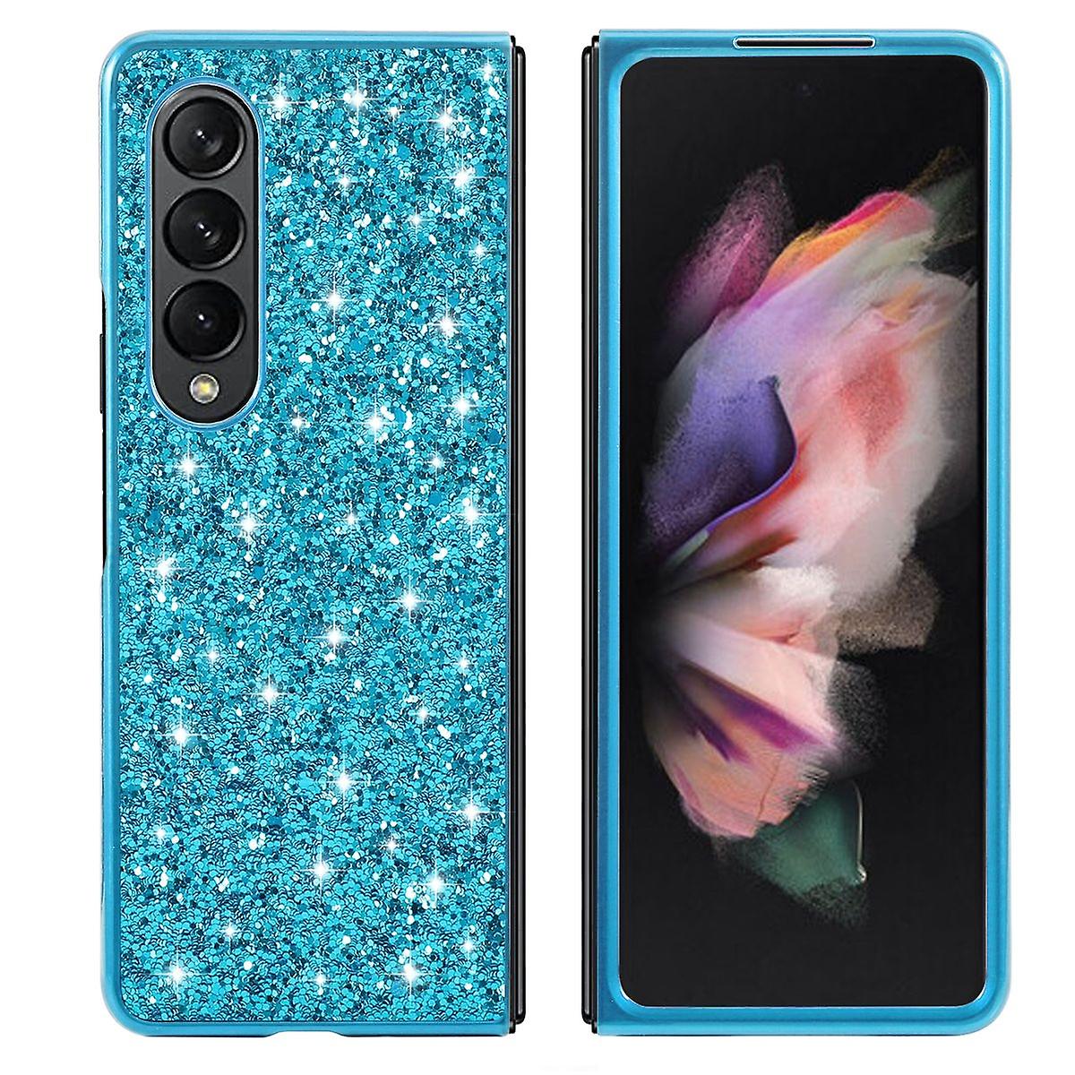 Für Samsung Galaxy Z Fold4 5G Glitzer Diamant Design Kunststoff TPU Cover Handy Tasche Hülle Etuis Blau